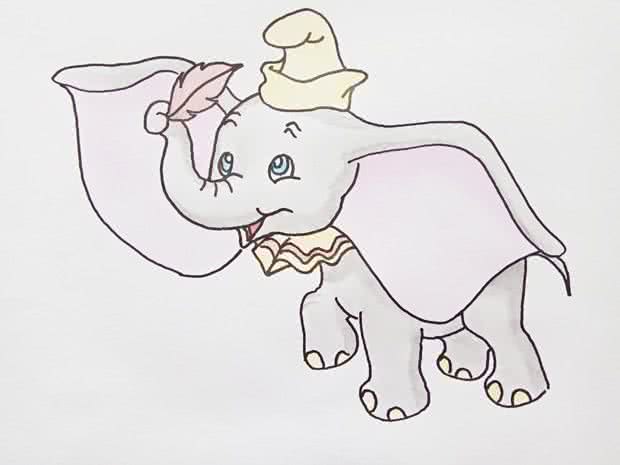 Слонёнок Дамбо – персонаж мультфильма из мира Дисней. Мода на этот мульт давно прошла, но этого персонажа продолжают узнавать и дети, и взрослые. Дамбо весёлый и милый малыш. Рисовать его – одно удовольствие.