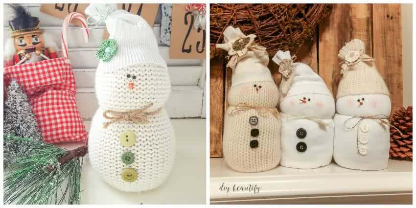 Новогодняя поделка: снеговик из свитера и носка