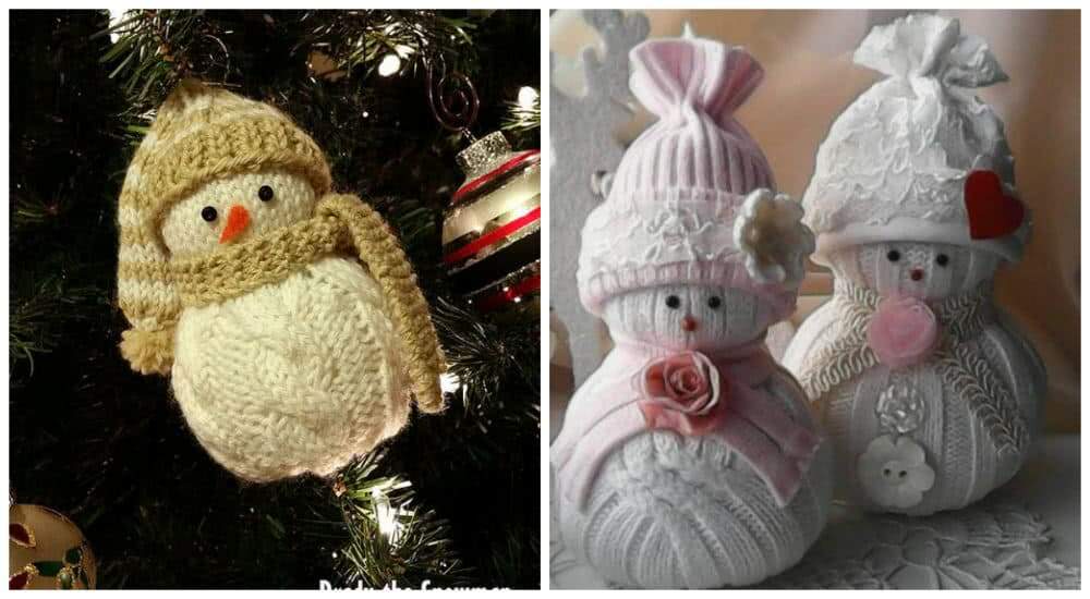 В зависимости от того какая вязка у свитера, ваши снеговики будут отличаться. Например вязка «коса» сделает игрушку более объемной.