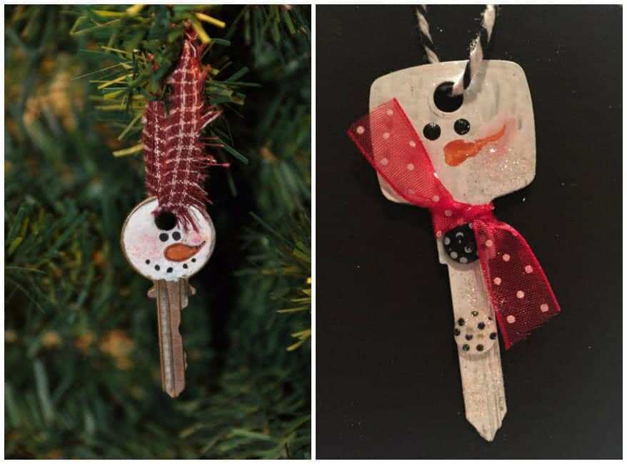 Проще простого — справится даже ребенок. Раскрашиваем ключ акриловой краской, взрослые могут использовать лак для ногтей. Детям не рекомендуется дышать лаком или маркерами на основе краски. Сверху можно покрыть рисунок блестками, приклеить пуговицы. Повяжите на снеговика-ключа ленточку. Он будет рад стать украшением елки, быть новогоднем талисманов в ключнице.