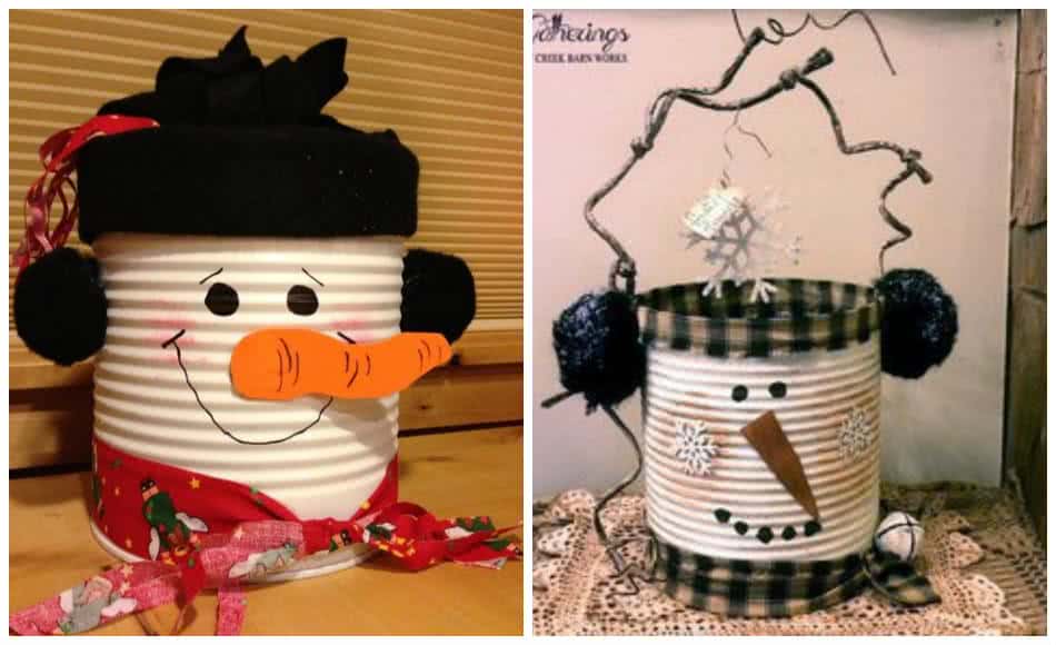 Остались жестяные банки от краски? Они пригодятся, чтобы сделать снеговика во двор или для коридора.