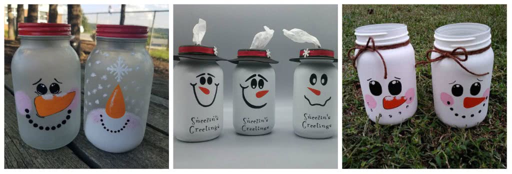 Нарисуйте снеговика на банке. Лучше смотрится когда их несколько. Как представите снеговика — дело вашей фантазии. Можете нарисовать только мордочку, а можно изобразить его полностью. В магазинах есть гирлянды на батарейках. Если поместить ее внутрь, то банка озариться волшебным светом. Такой зимний ночник порадует вашего ребенка и избавит от страха темноты. К тому же свет будет мягким, нежели просто повестить гирлянду.