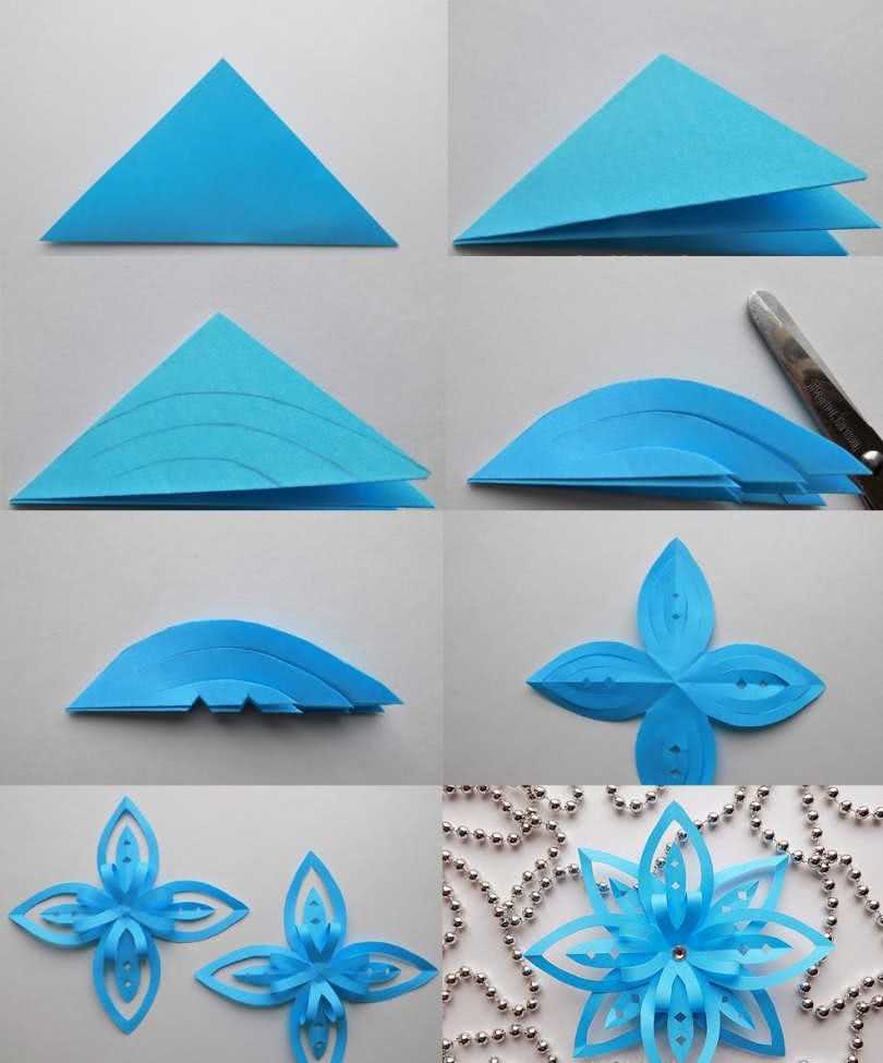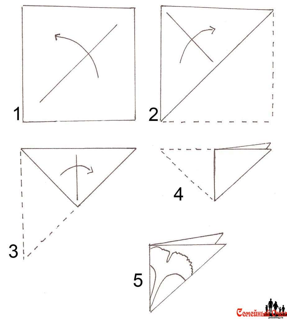 Простая схема складывания бумаги для снежинки