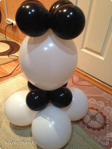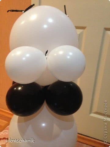 Делаем мордочку. надуваем две пятерочки. связываем между собой и привязываем к нужной пуговичке