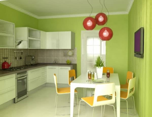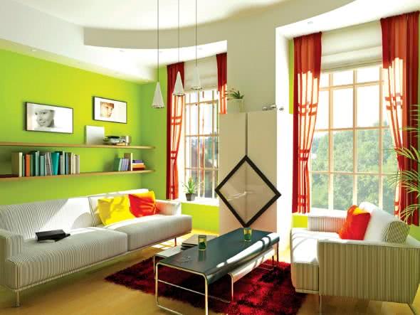 Чтобы интерьер был приспособлен к нормальной жизни, следует выбирать более спокойные оттенки как красного так и светло-зеленого.