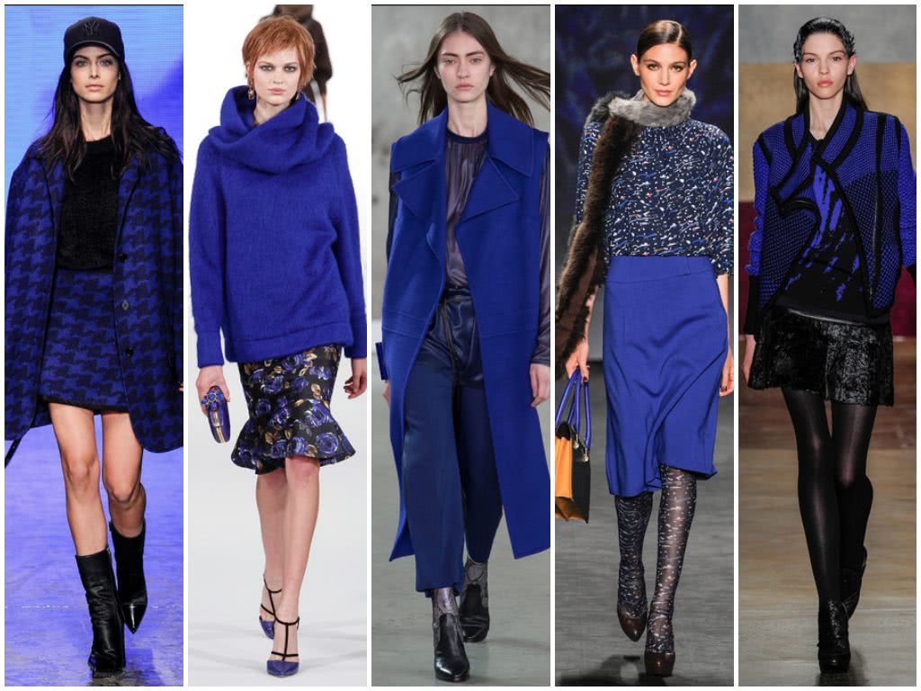 Популярные оттенки синего позволяют создавать стильные луки в сочетании с одеждой и обувью других цветов