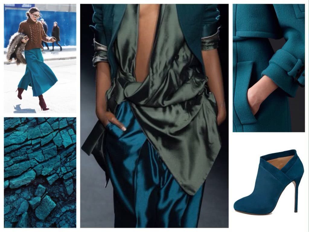 Редкий, яркий и спокойный одновременно. Он унаследовал универсальность бирюзовых оттенков и спокойствие темно бирюзового цвета. Цвет приживется в любом гардеробе. Сочетания с этим цветом могут быть сдержанными, скромно интеллигентными. Этот цвет может присутствовать как в деловом стиле, так и в непринужденном, для отдыха.