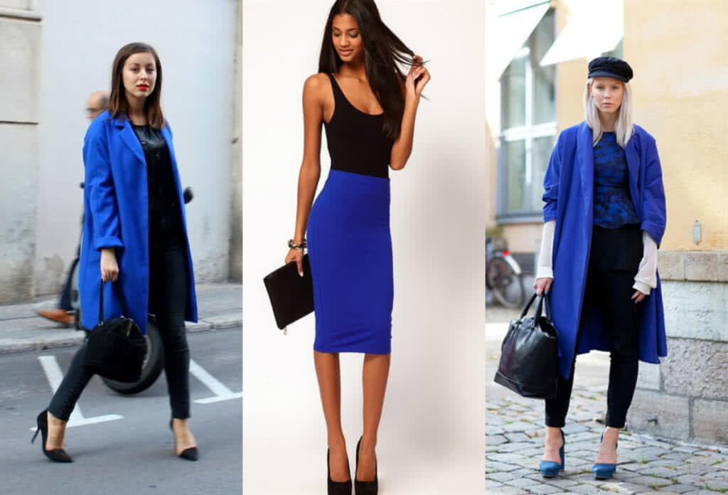 Сапфировый более уместен для посещения театра или ресторана, темный чернильный — для вечернего наряда. Выбирая сочетание красного цвета и насыщенного синего (надо сказать, очень смелое), следует помнить, что один цвет должен стать дополнением для другого (правильным дополнением к синему наряду могут стать сумочка красного цвета, украшения или обувь). Такое сочетание придаст уверенности, образ будет элегантным и стильным.