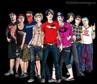 - Эмо − поклонники эмо-музыки (сокращенно от термина «эмоциональный»). Выделяются черно-розовой гаммой в облике и обостренной чувствительностью.