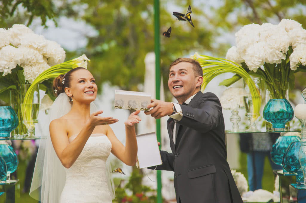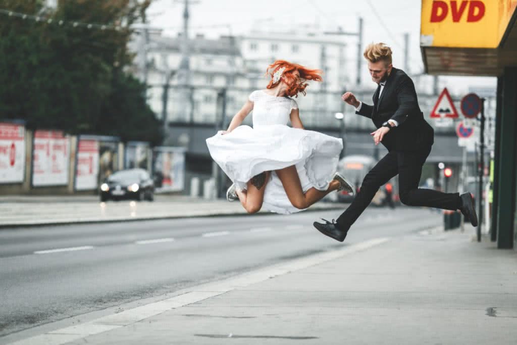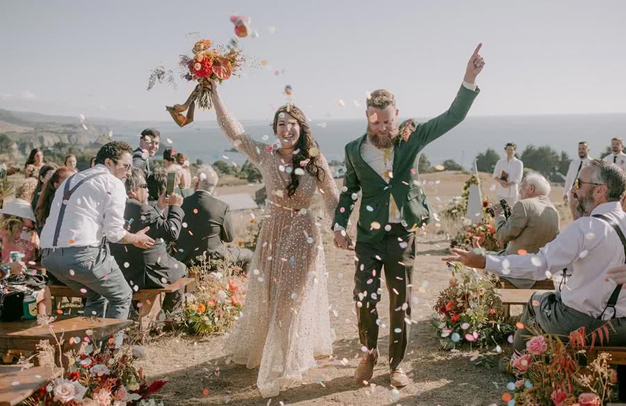 Покидая место церемонии счастливыми молодоженами, делайте это, не скрывая эмоций: