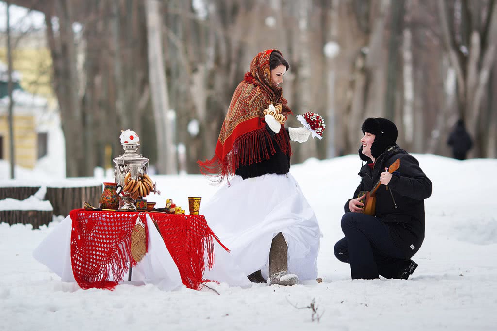 Летом самый подходящий антураж — цветущее поле, зимой — укутанный снегом лес.