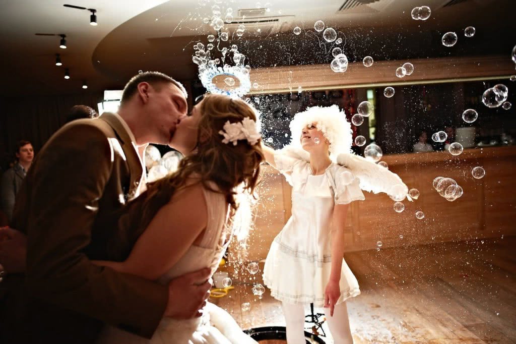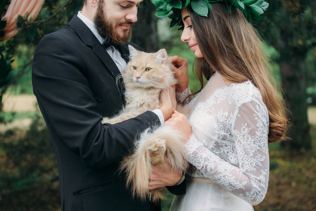 Ставшие классикой белоснежные голуби, очаровательные пушистые кролики, преданный пес или экзотический крошечный поросенок — животные сделают кадры еще более нежными, трогательными, интересными. Главное, не оставляйте живых существ в каком-нибудь вольере или клетке на весь праздничный вечер, это станет для них мукой!