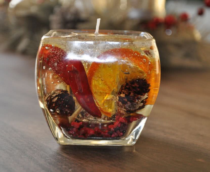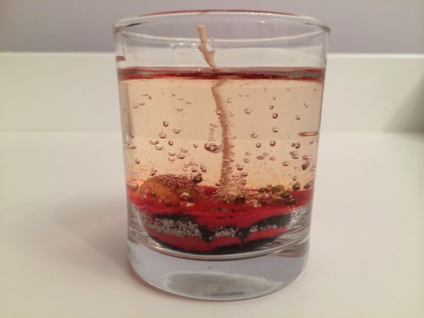 В геле за счет разности температур часто образуются пузырьки. Во многих свечах это выглядит уместно. Если же задумка подразумевает гель без пузырьков, то есть одна небольшая хитрость – предварительно нагреть форму.