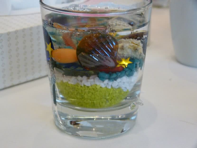 Очень часто с моря привозят цветные стекла, ракушки всех размеров и камни. Вместо того, чтобы это богатство пылилось в недрах шкафа, можно его использовать для создания собственного кусочка моря в стакане. Морская тематика уже много лет актуальна и не выходит из моды. Гелевые свечки в этом стиле будут отличным элементом дизайна комнаты или могут выступить в качестве подарка.