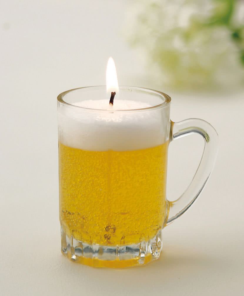 Взять любую пивную кружку. Стандартным способом крепим фитиль. Готовим гель и вливаем в кружку. Обязательно надо оставить запас для «пены» и дать остыть минут 10. Пока гель остывает, взять парафин, насыпать в железную посуду и греть на водяной бане. Как только парафин расплавился, его надо убрать с огня и дать остыть. В момент, когда на нем начинает схватываться пленка, взять венчик и интенсивно взбивать до пушистого состояния белка.
