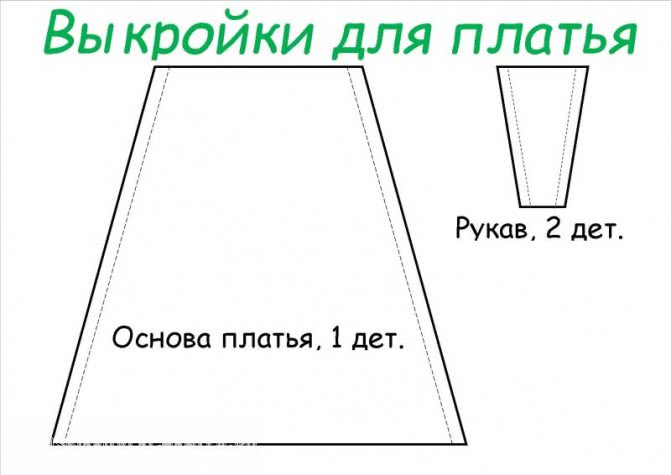 Красивое, но элементарное платье выглядит как трапеция. Построения вещи производится следующим образом: