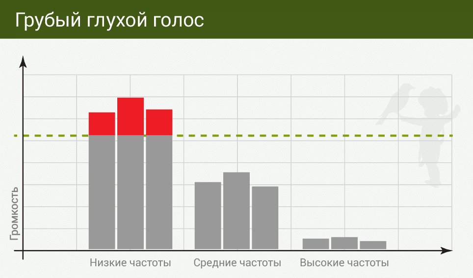 Бывает обратная ситуация, когда низкие частоты слышно хорошо, а вот высокие утеряны. В таком случае, голос воспринимается как грубый и глухой.