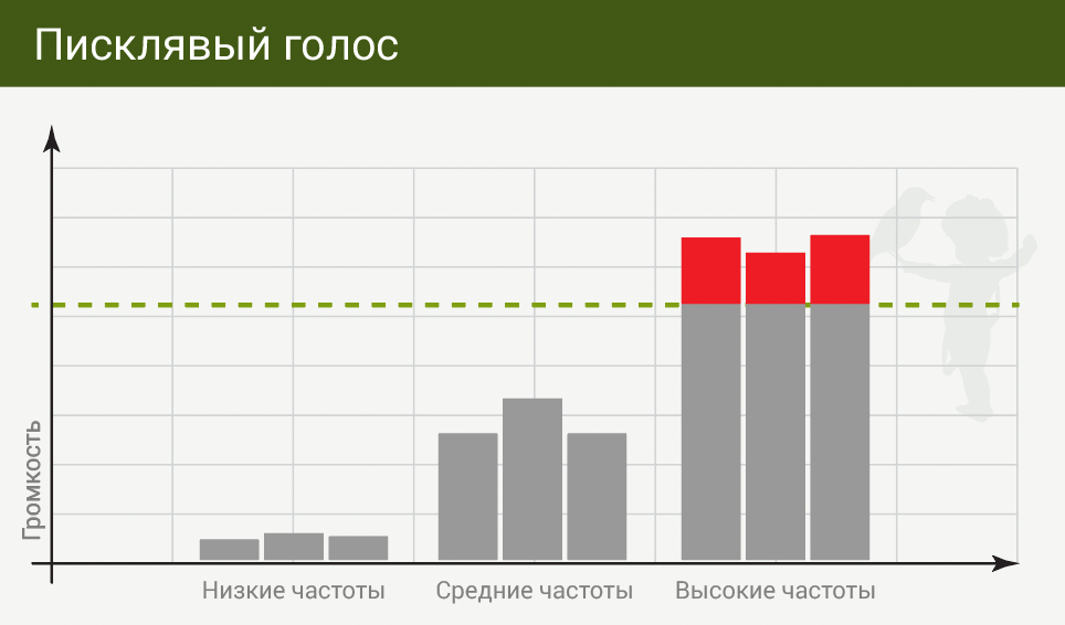 Как видите, низкие частоты — есть. Они есть в каждом голосе. Но просто их не слышно. Поэтому голос звучит пискляво и неприятно.