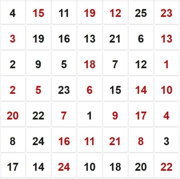 И так продолжать до цифры 24 черного поля, и цифры 1 красного поля.