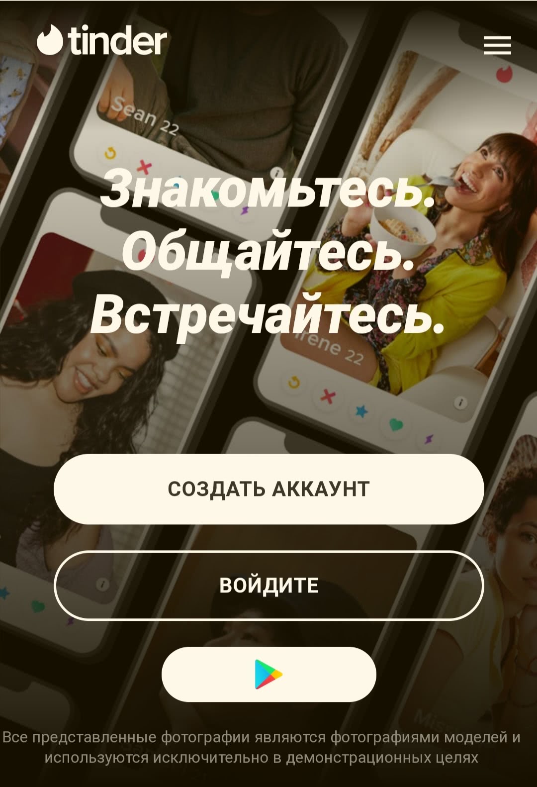 - Первое действие — скачивание приложения. Сделать это можно либо в Apple App Store, либо в Google Play Store — всё зависит от той платформы, которой вы пользуетесь. Ссылки есть на официальном сайте Tinder https://www.gotinder.com/. Стоит отметить, что оно является бесплатным.