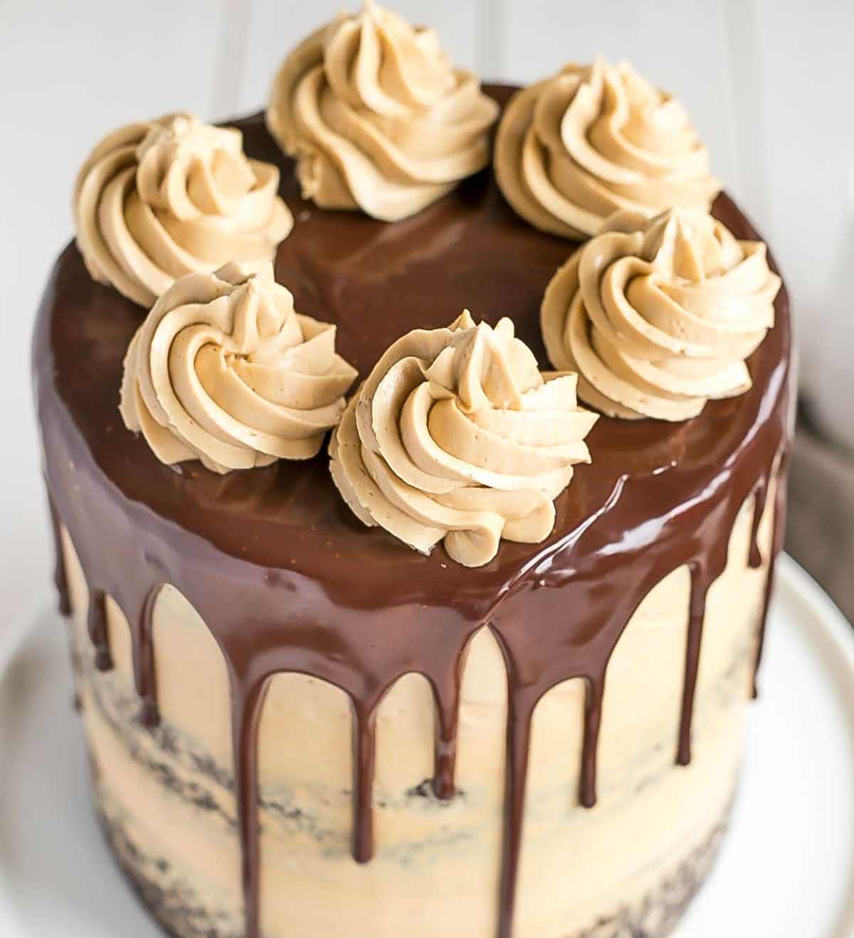 А вот — шоколадная глазурь, красиво стекающая по бокам торта и розочки из масляного крема, которые отлично держат форму.