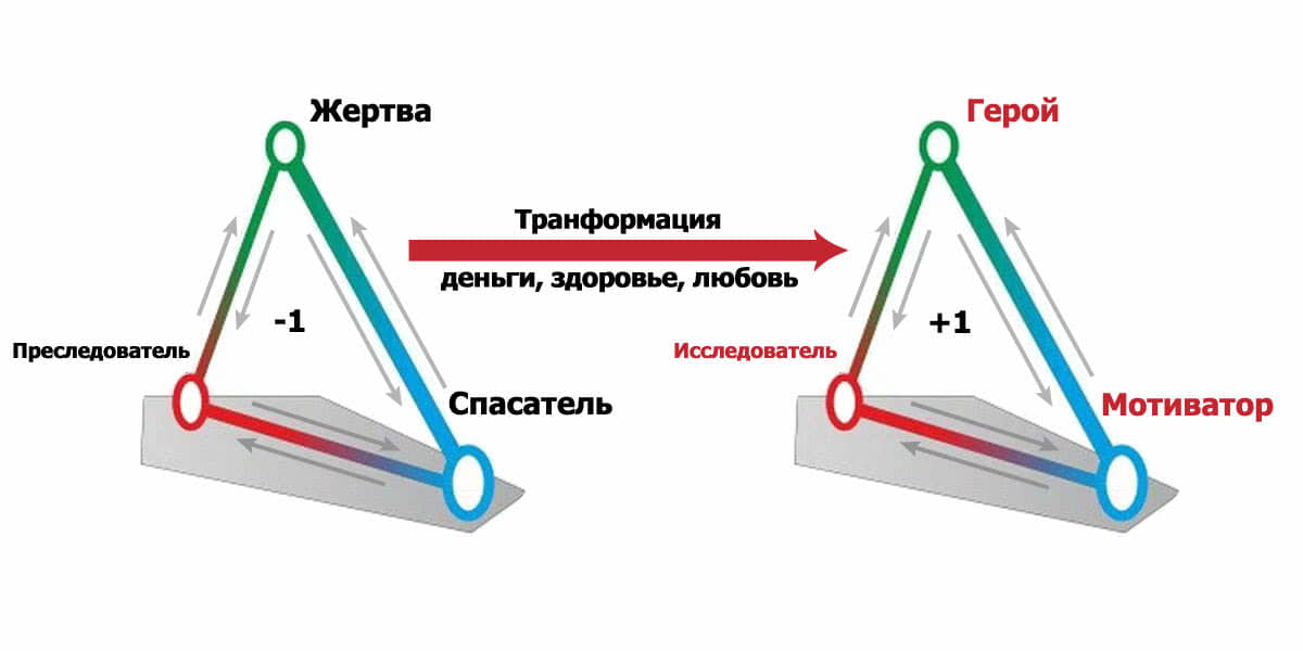 Отношения в треугольнике Карпмана нездоровые. Здесь все чистой воды манипуляция, игра, иллюзия. Каждый получает лишь свою определенную выгоду.