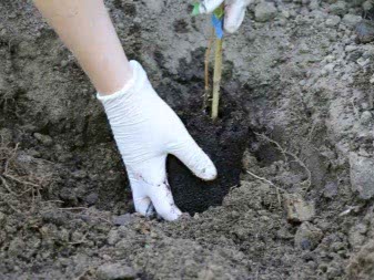 - Саженец помещают на холмик грунта, расправляют его корни и засыпают рыхлой землёй, немного её уплотняя. Корневую шейку погружают на 10 см ниже поверхности почвы, таким образом, почки будут защищены от промерзания.