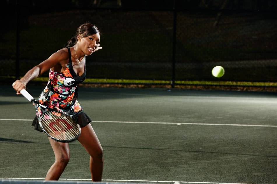 Винус Уильямс на теннисном корте тренируетсяДизайнерская компания, известная как среди профессиональных теннисистов, организаторов Олимпийских игр и теле-шоу.