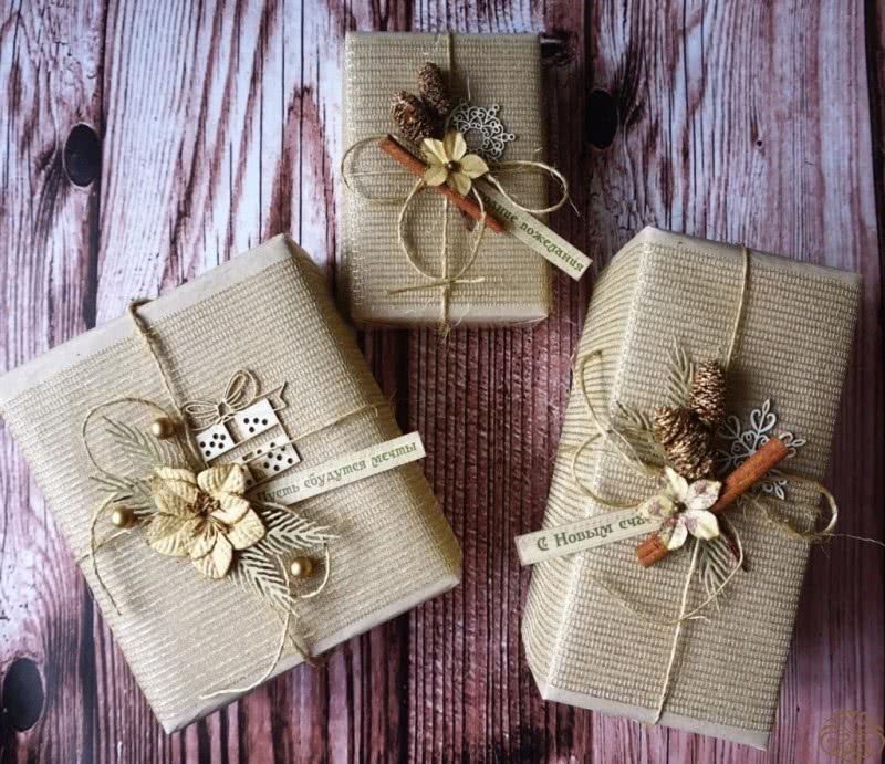 Рассмотрим несколько вариантов, как допустимо эффектно задекорировать коробочку для подарка.