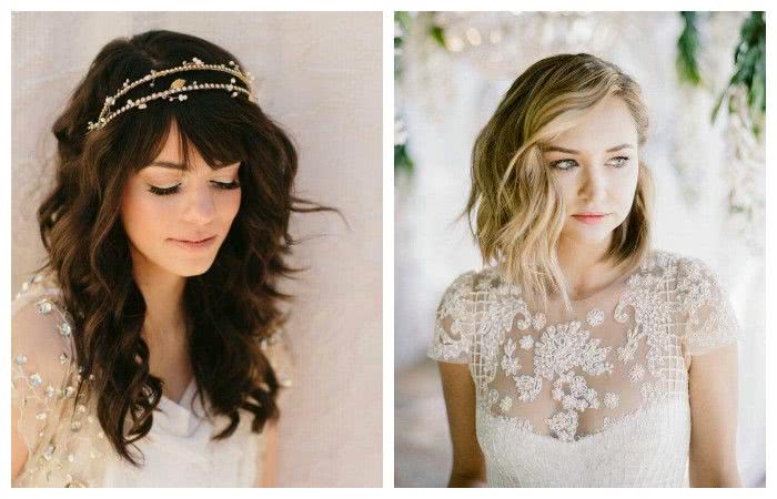 Такая прическа подходит для невест с челкой и без. Цвет волос значения не имеет, но стоит помнить, что в тренде сложное окрашивание и контуринг.