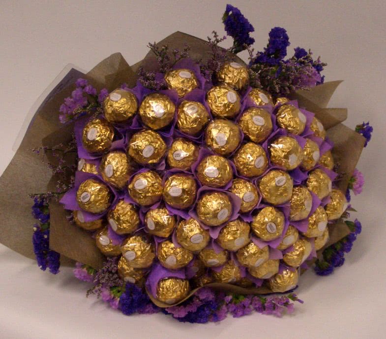 К новому году сооружают маленькие часы, декоративные домики-избушки, елочки. К мужскому празднику в феврале изготавливают кондитерские танки, вертолеты и шахматные доски, где в роли фигур выступают конфеты. Во время партии ладью соперника можно просто съесть, вместо того, чтобы отбрасывать с поля битвы. Актуальны подобные подарки и на именины. К примеру, на день Татьяны можно соорудить торт или нежный весенний букет из полевых цветов и зелени. Он станет «приветом» из лета, до которого остаются считанные месяцы. На Валентинов день любимых порадует букетик из рафаэлло, которые ассоциируются с трогательным подарком, обладающим нежным вкусом.