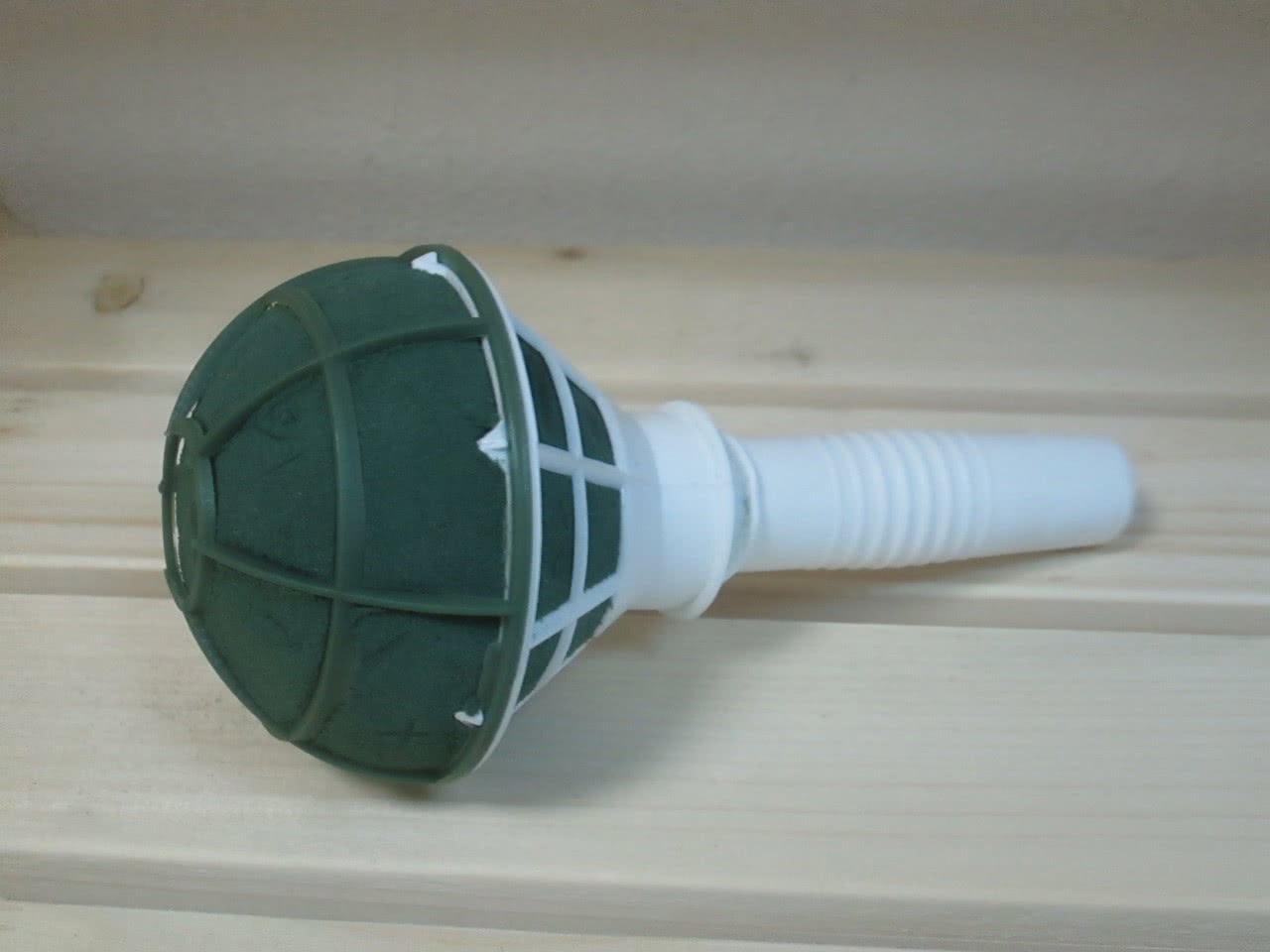 - Сначала оформляем порт ручку (пластмассовое устройство для букета, которое напоминает микрофон). Из устройства извлекаем губку, нам она не нужна, она нужна для живых цветов.