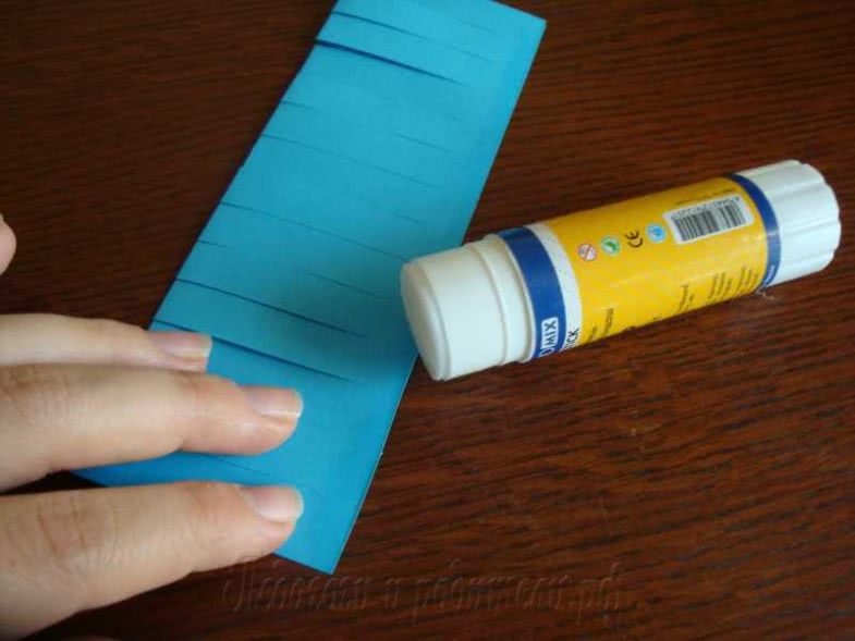 - Из яркого листа отрезается прямоугольная полоса 50 на 200 мм.