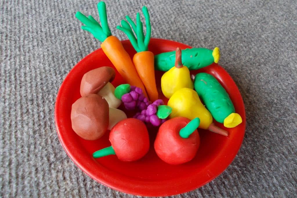 Оригинальная лепка из пластилина, овощи и фрукты: