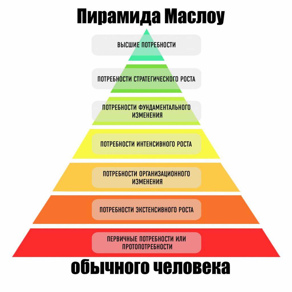 В основании пирамиды заложены жизненные потребности, касаемые физиологического и психического здоровья. Именно они делают человека живым: