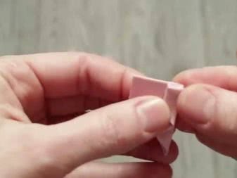 По центру нижнего ребра наносим немного клея и складываем элемент пополам, как на фотографии.