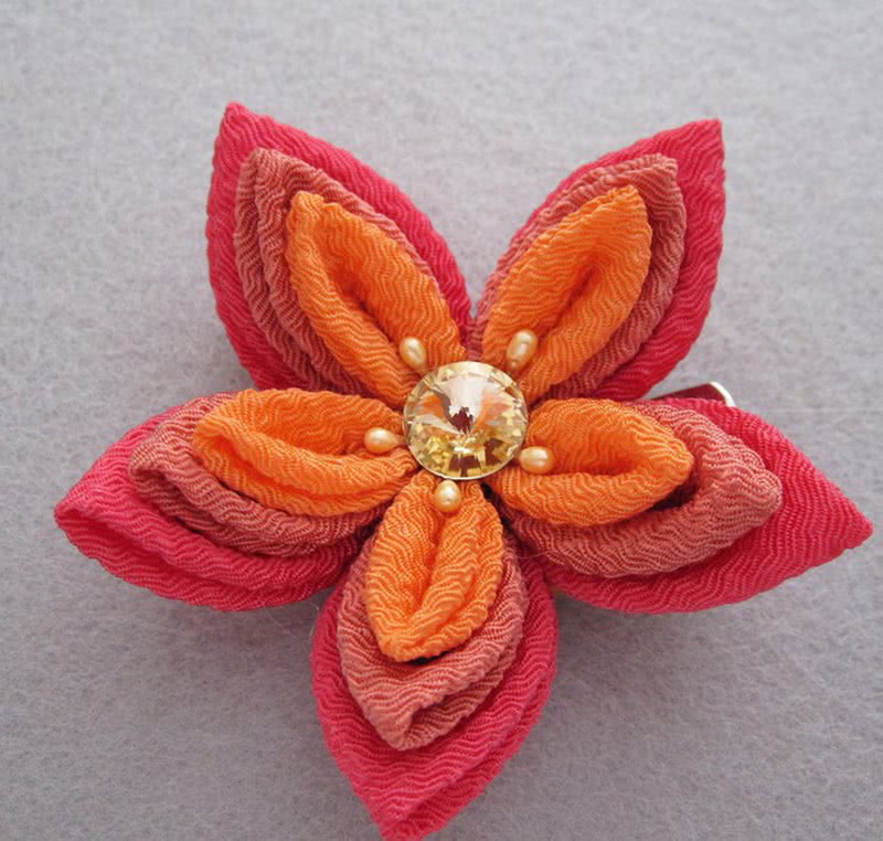 Теперь вы знаете, как сделать заколку из атласных лент в технике канзаши. И, кстати, различные эксперименты могут привести к прекрасному результату! Попробуйте, подойдут и другие материалы — например, репс.