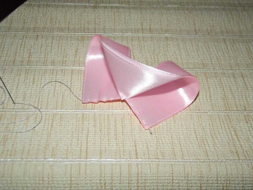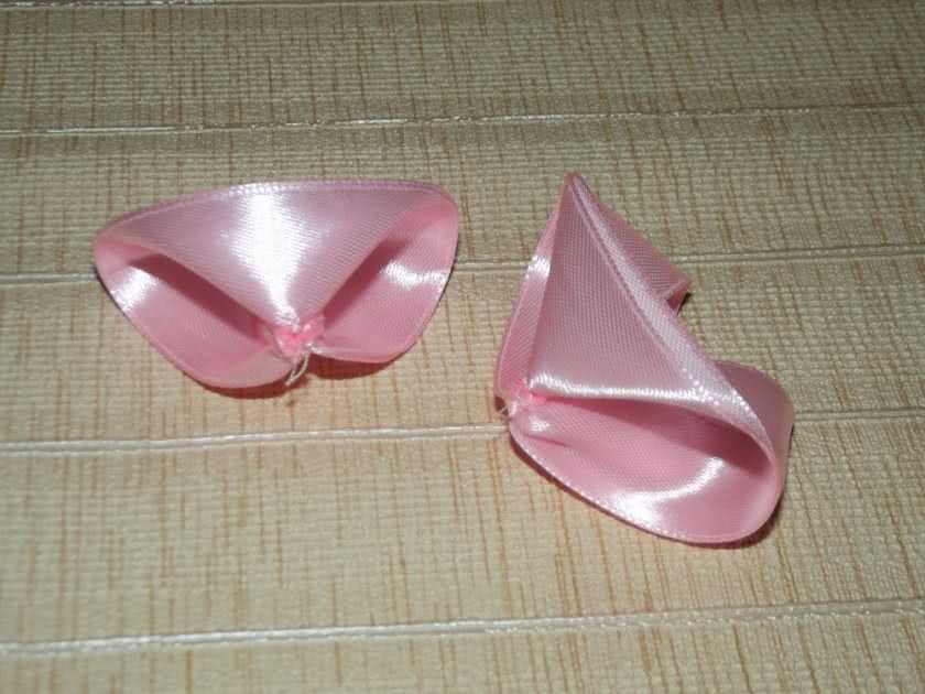 Этап 3. Затем точно так же сделайте с другой ленточкой. Каждую заготовочку прошиваем посередке прочной ниткой.