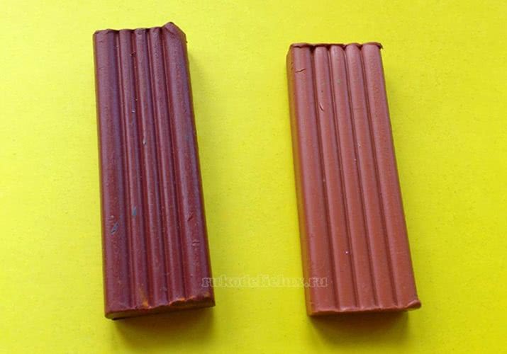 Если цвет слишком яркий, можно добавить немного коричневого пластилина, и он станет темнее.