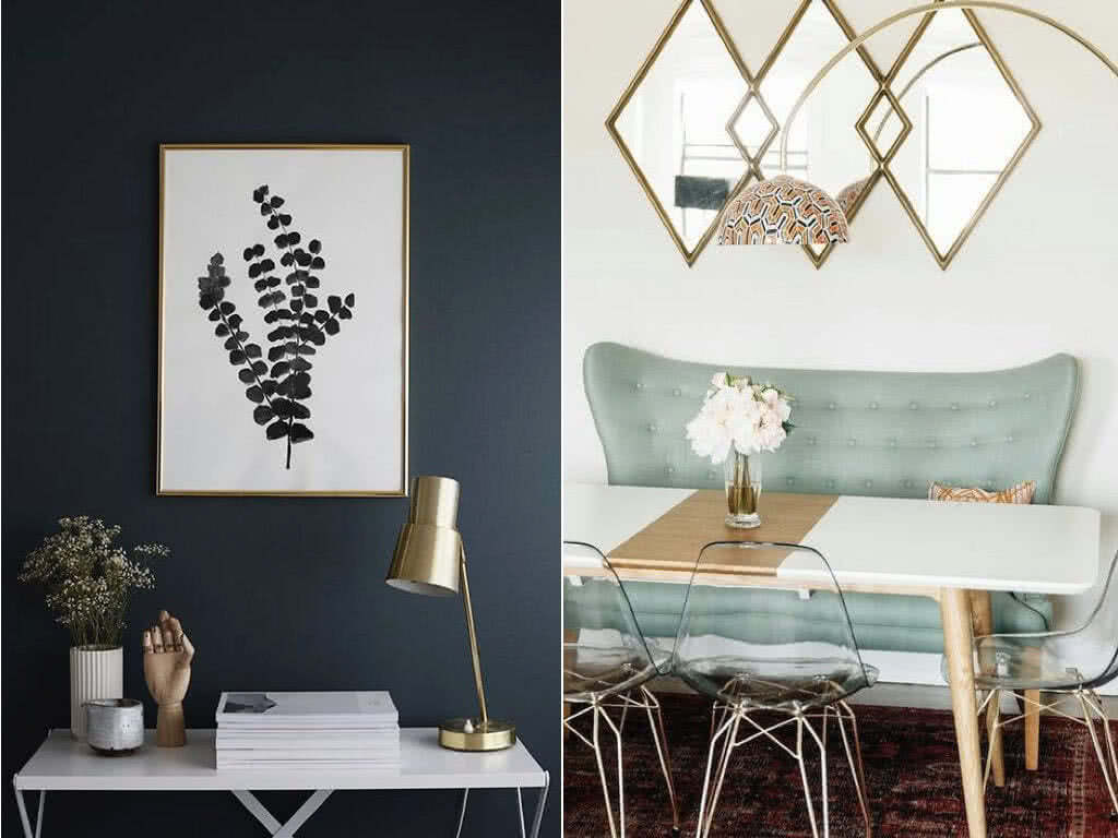 Вы можете комбинировать золото с коричневыми, белыми и холодными «битыми оттенками» белого, а также с сырьем, таким как бетон. Некоторые теплые цвета, такие как красное вино или розовая пудра, также выглядят изящно, но здесь вы должны быть осторожны с количеством, чтобы не слишком переусердствовать.