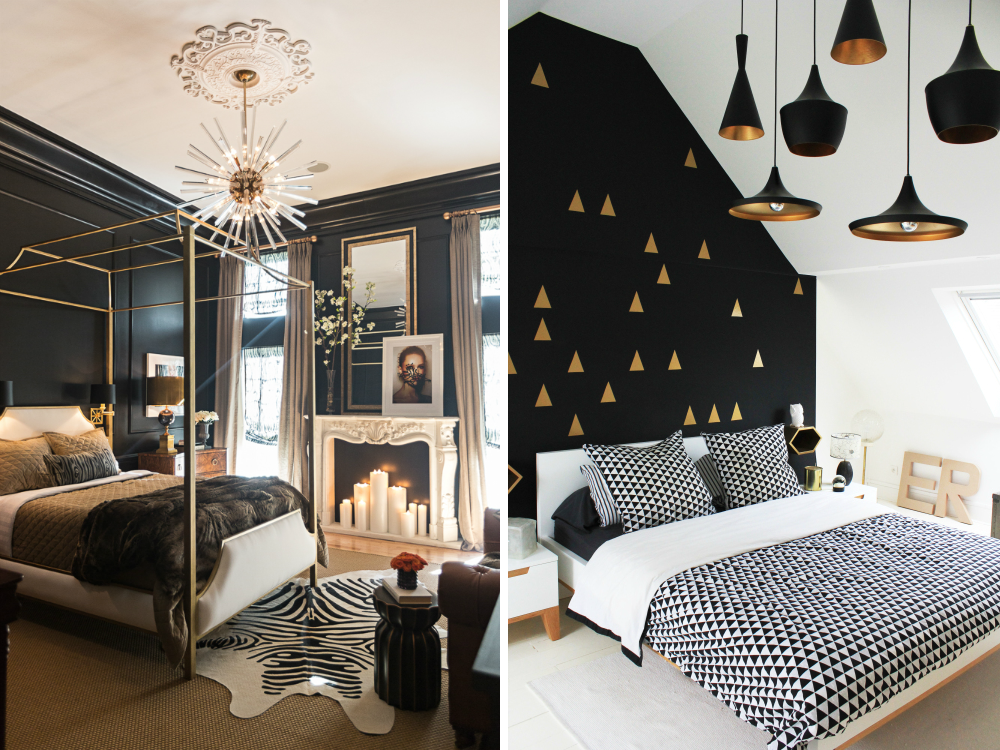 Одна из акцентированных стен или панелей, сделанных таким образом, наверняка привлечет внимание многих гостей. Ткани с элементом золотого цвета, керамика, лепнина — используемые в меру, украсят интерьер