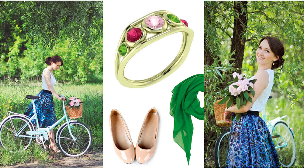 Украшения из такого сплава встречаются редко. Они необычно смотрятся, но из-за своего состава получаются довольно хрупкими, практически непригодными для носки. Зеленое золото иногда используют в сочетании с другими цветами, например, с белым.